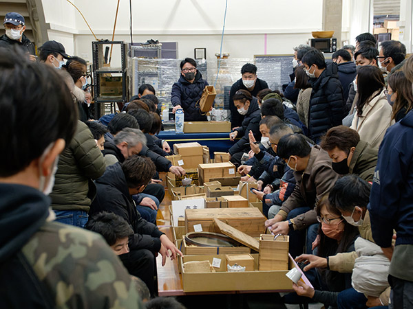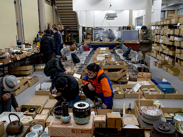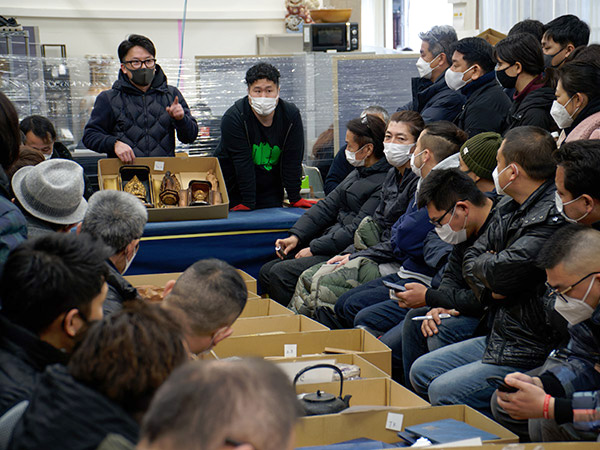 毎月27日・28日に開催している道具市場の会場の雰囲気や、実際の競りの様子をご覧いただけます。