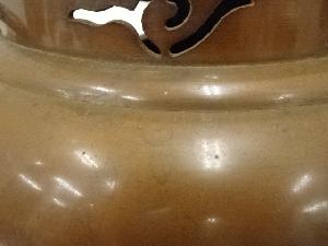 He studied under Jitsuzo Negoro, the holder of Important Intangible Cultural Property, and his works received a high evaluation for its new sense of style with traditional methods. He was recognized as a master of Heraoshi (to make decoration on surface of a cauldron by engraving outer flame using special sticks or spatulas.) and his works were called as “Seikou gamma” or “Jyousei gamma”.