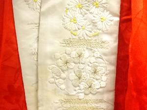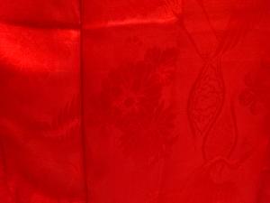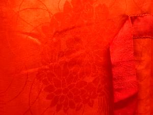 A Japanese silk satin damask. It has a shiny surface and is smooth to the touch.