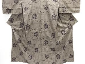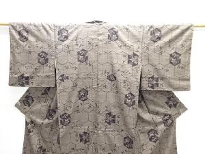 JAPANESE KIMONO / SILK / DORO OSHIMA TSUMUGI / WOVEN KIKKO & FLOWERS