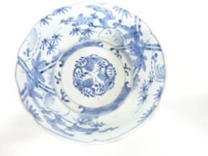 Blue and white porcelain. On the surface of biscuit firing pottery, designs are painted with cobalt oxide paint.