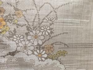 JAPANESE KIMONO / UNUSED / SILK / DORO OSHIMA TSUMUGI / WOVEN CLOUDS & KIKU & UME