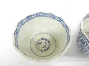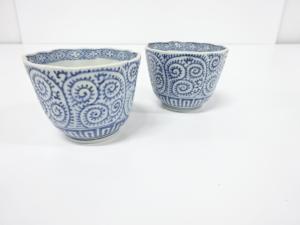 Blue and white porcelain. On the surface of biscuit firing pottery, designs are painted with cobalt oxide paint.