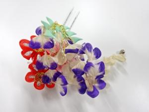 Tsumami-zaiku or Tsumami is a traditional Japanese craft made from small, square-cut pieces of cloth (usually Chirimen) that is pinched and folded with tweezers. It originated about 200 years ago during the Edo period.