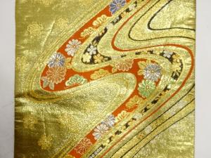 JAPANESE FUKURO OBI FOR FURISODE / WOVEN FLORAL PLANTS