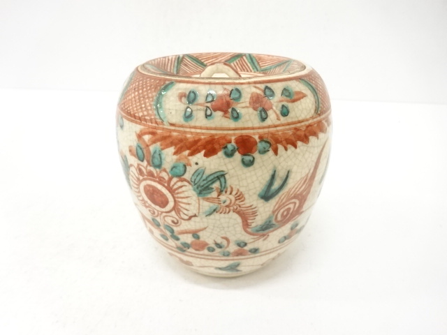 A technique of decorating ceramics. Overglaze painting used glassy colors of red, green, yellow, purple and blue. It start to be made in China during Sung period and Kakiemon started to make Aka-e ceramics in Japan for the first time in Tenpo period (1644-1648).