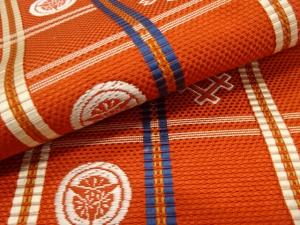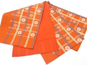 本場筑前博多 格子に井桁・花丸模様織り出し 袋帯