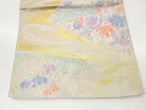 切り嵌め風組紐・花葉模様織出し袋帯