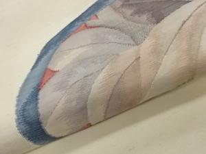 手織り紬楕円に葉模様織出し洒落袋帯