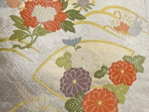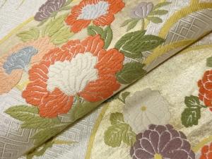 唐織地紙に草花・蝶模様織出し袋帯