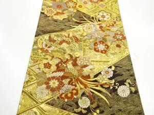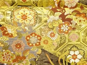 花輪に鳳凰・蝶模様織出し袋帯