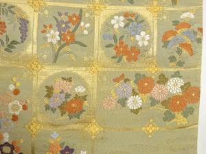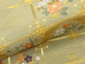 格子に花々模様織出し袋帯