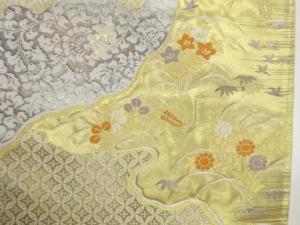引箔道長取に秋草・古典柄・波模様織出し袋帯