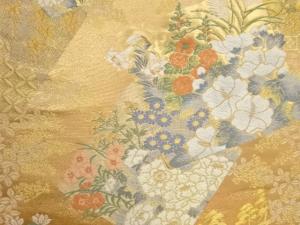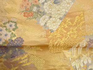 色紙に花々模様織出し袋帯