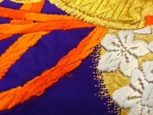 鼓に花々・笹模様織出し袋帯