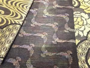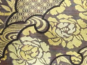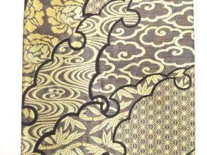 斉藤三才 金糸 雪輪に牡丹・笹・古典柄模様織り出し 袋帯