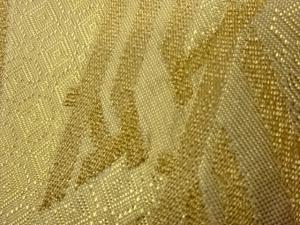 金、銀、漆を貼った特製の和紙を細く裁断したものを経糸とし、絹の撚糸を染色したものを緯糸として織り上げたもので、網代(あじろ)、紗綾(さや)型、菱等などの多様な模様を持つ。