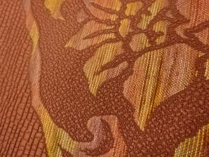 本場筑前博多花唐草に横段・変わり半円模様織出し名古屋帯