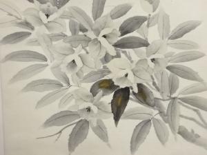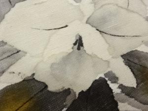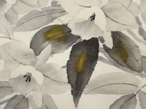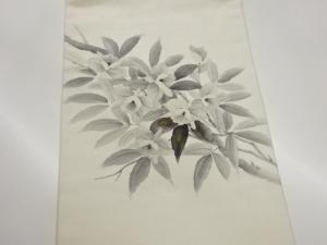 作家物 手織り紬金彩手描き花葉模様名古屋帯
