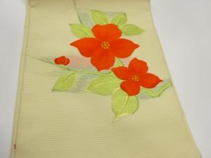 絽枝花模様織出し名古屋帯