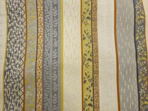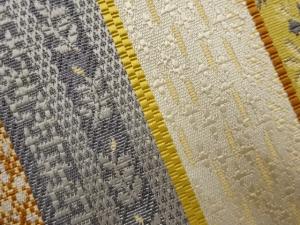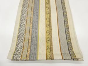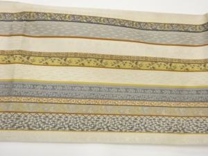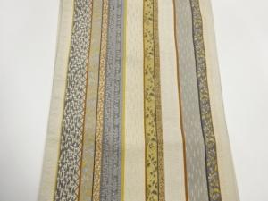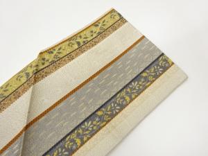 本場筑前博多銀通し縞に花唐草・幾何学模様織出し名古屋帯