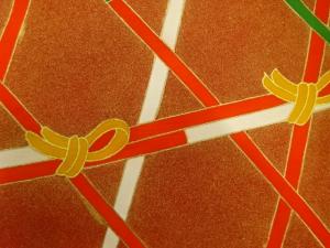 塩瀬 金彩 手描き 竹垣模様 名古屋帯