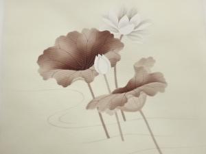 塩瀬金彩手描き流水に蓮模様名古屋帯