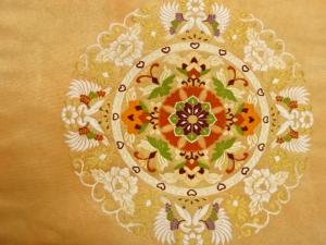 引箔華紋に向かい鳥模様織出し名古屋帯
