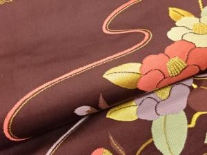 曲線に椿模様織出し名古屋帯