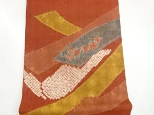 手織り紬絞り汕頭刺繍鬘帯に花鳥模様名古屋帯