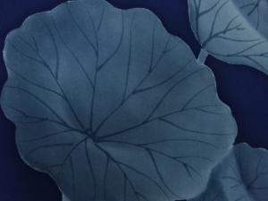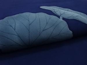 塩瀬 手描き 蓮模様 開き名古屋帯