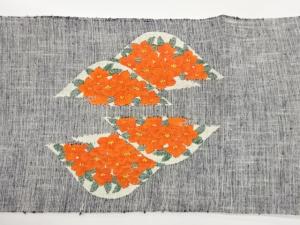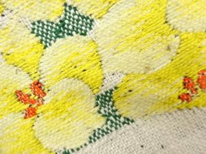 手織り真綿紬曲線に花葉模様織出し名古屋帯