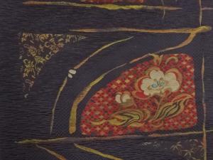 本場筑前博多変わり横段に草花模様織出し名古屋帯