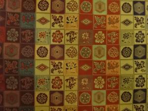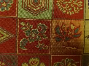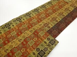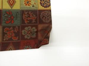 格子に菱・亀甲・草花模様織出し名古屋帯