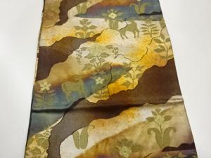 道長取に動物・草花模様織出し名古屋帯