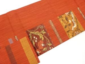 横段に花唐草・鳥模様織出し名古屋帯