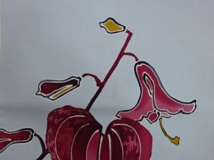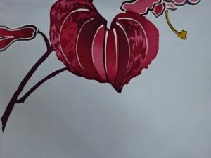 塩瀬手描き抽象花葉模様名古屋帯