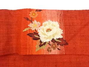 手織り真綿紬牡丹模様織出し名古屋帯