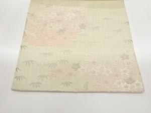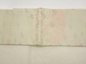 引箔横段に桔梗・萩・笹模様織出し名古屋帯