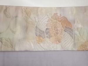 ふくれ織花輪に鳥・唐草模様織出し名古屋帯