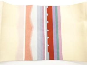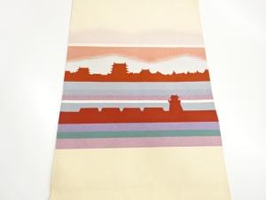 綴れ横縞に抽象城下町風景模様織出し名古屋帯