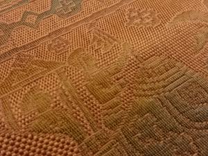 本場筑前博多象に人物・幾何学模様織出し名古屋帯