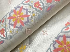 格子に華文・抽象花葉模様織出し名古屋帯