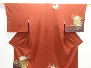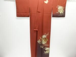 箔置き 扇面に十二単・秋草模様刺繍訪問着