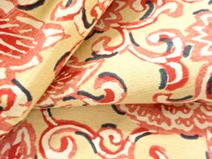 大正ロマン 型染牡丹唐草模様手織り紬着物