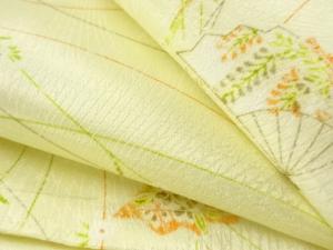 未使用品 草花に扇模様小紋着物