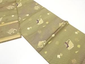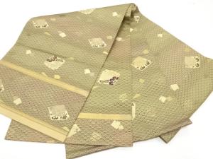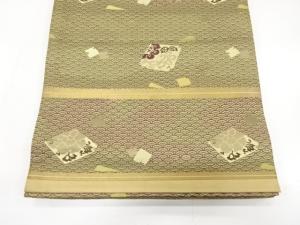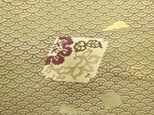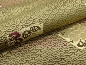 アンティーク 青海波に箔散らし・草花模様織り出し丸帯(着用可)