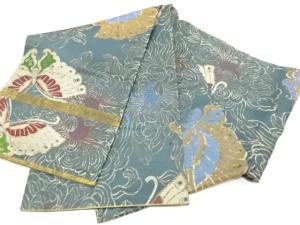 アンティーク 蝶に菊模様織り出し丸帯(材料)