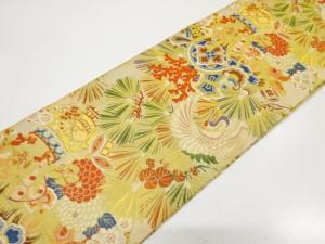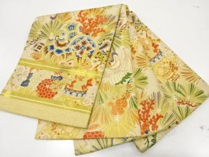 アンティーク 鶴に宝尽くし・松・菊模様織り出し丸帯(材料)