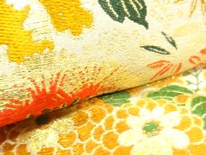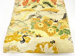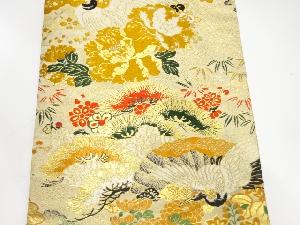 アンティーク 鶴に松竹梅・牡丹模様織り出し名古屋帯(262センチ)(材料)